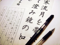 まず筆ペンで字を学び、その後にボールペンの練習をすると、筆ペンで学んだ「とめ」「はね」や文字の組み立て方が少しずつボールペンの書き方に浸透されて、 日頃のクセが払拭されていきます。小筆と墨を用いたレッスンも可能です。